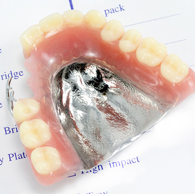 金属床義歯は、入れ歯の土台となる床(しょう:歯茎に接する部分)が金属でできている入れ歯です。床が薄いため装着時の違和感が少なく、食べ物の温度を感じやすい特徴があります。